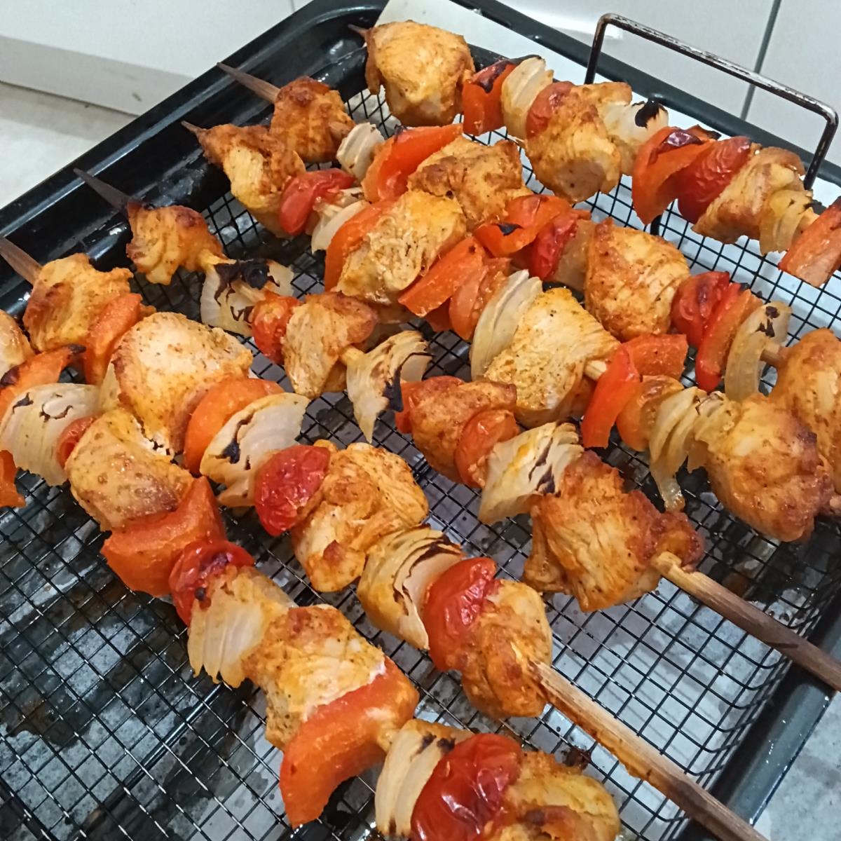 בשיפוד 1 אמורות להיכנס 4 חתיכות חזה עוף ו3 קבוצות של ירקות.