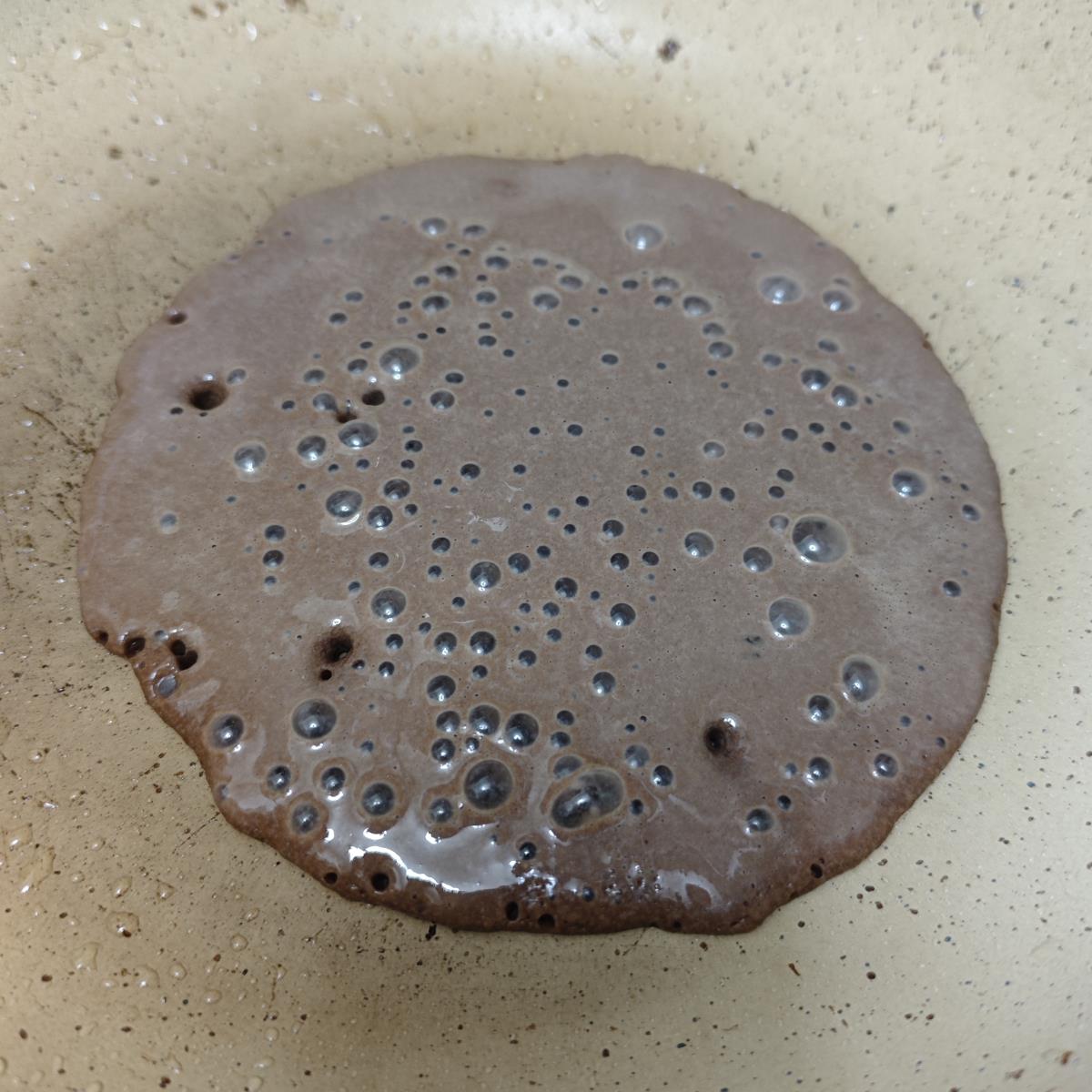 אני משתמשת בכוס מדידה של הרבע כוס, לקחת כמות של בלילה לשפוך למחבת להפוך שמתחיל להיווצר בועות ולהתייצב בתחתית.