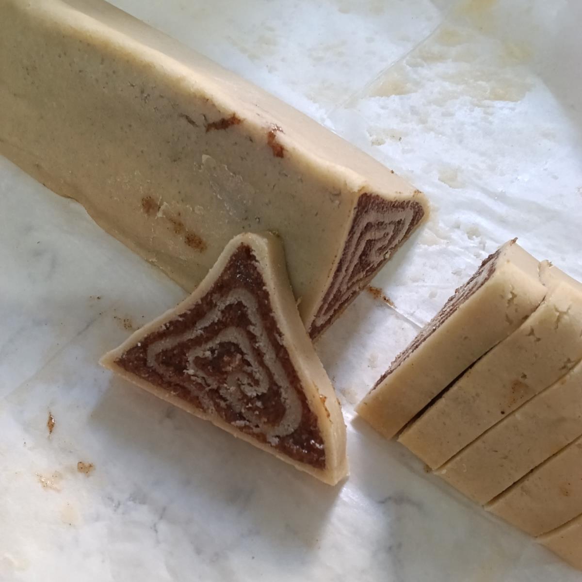 מרימים את נייר האפיה משני הצדדים ויוצרים משולש מהגליל(כמו בתמונה)