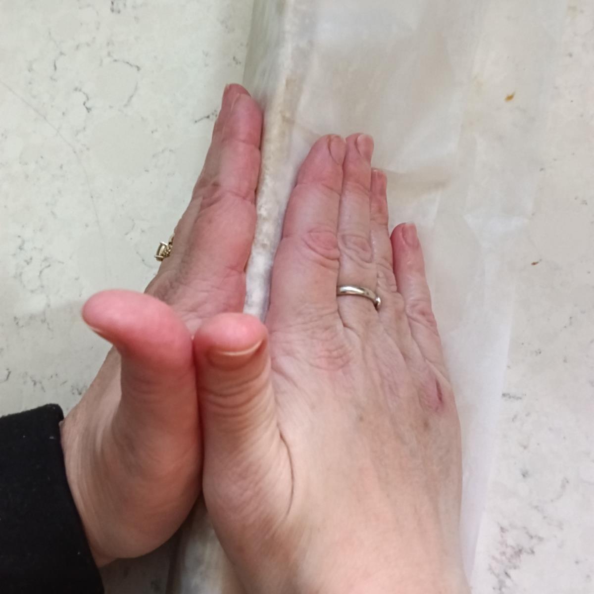 -לאחר שעה, מרדדים את הבצק בין שני ניירות אפייה מקומחים קלות