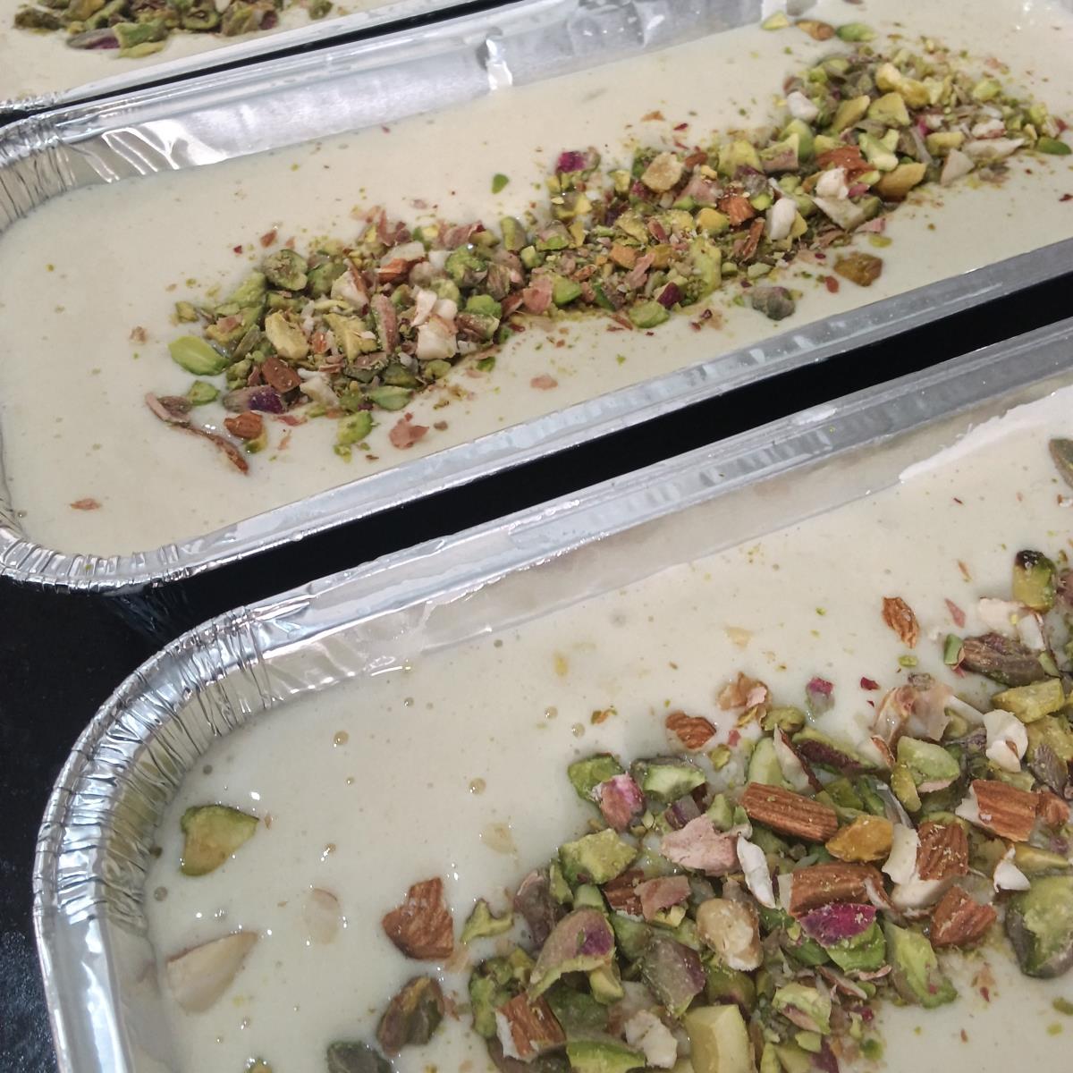 מעבערים לתבניות או לתבנית אחת ומפזרים מעל פיסטוקים גרוסים גס