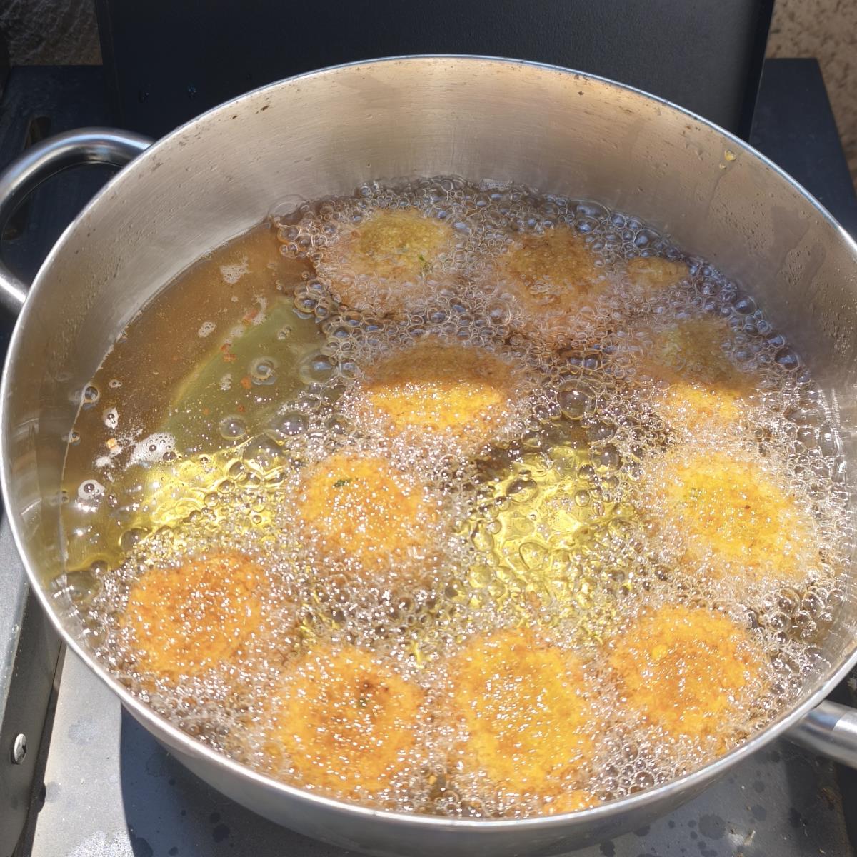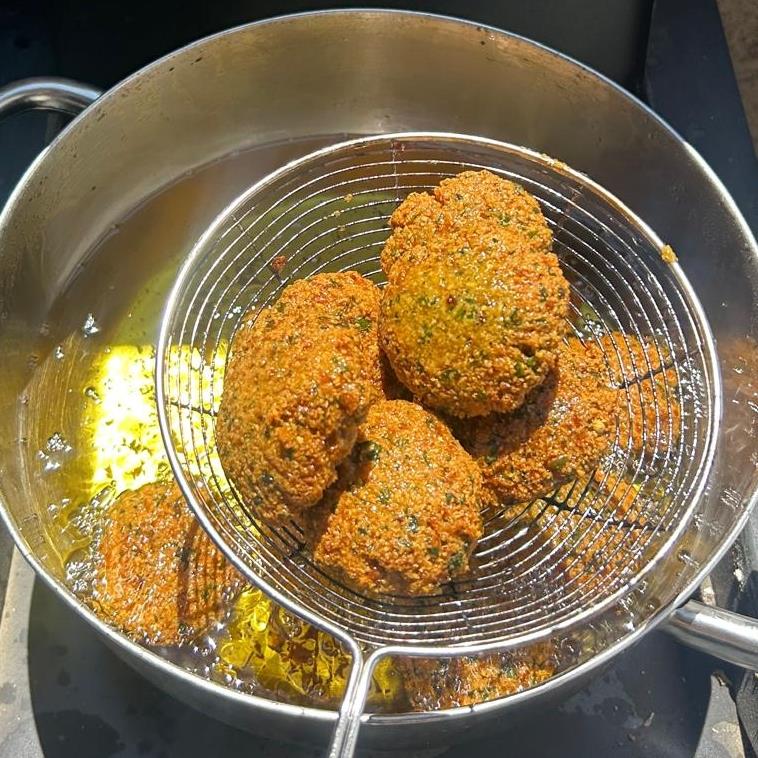 מחממים ליטר שמן בסיר עמוק. לשים לב השמן לא יישרף ולא יתחמם מידי. כדי שהפלאפל לא יישרף מבחוץ ולא יהיה בשל מבפנים. .