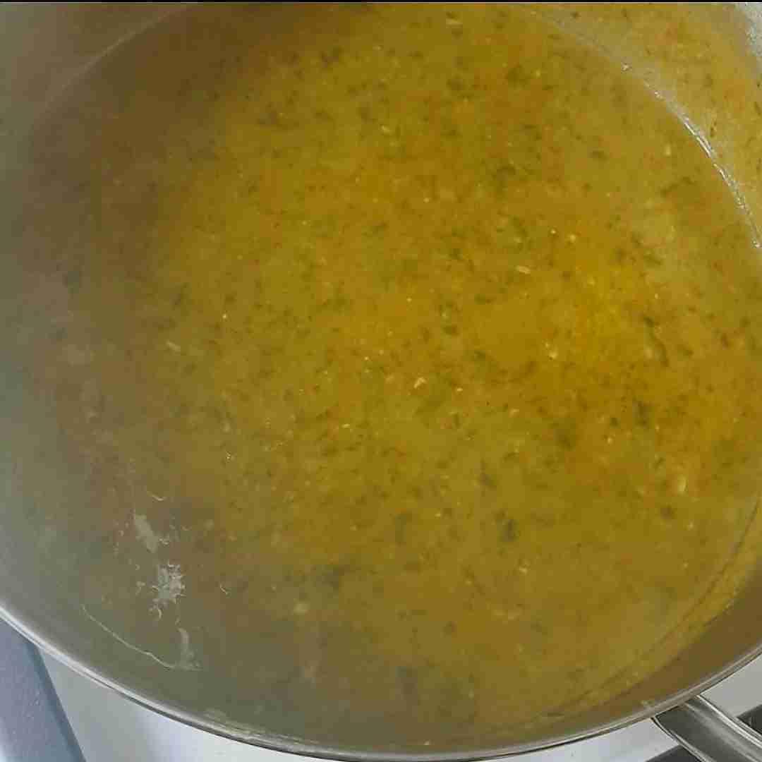 להוסיף את האפונה ומים ולהרתיח. להוסיף אבקת מרק עוף ולערבב..