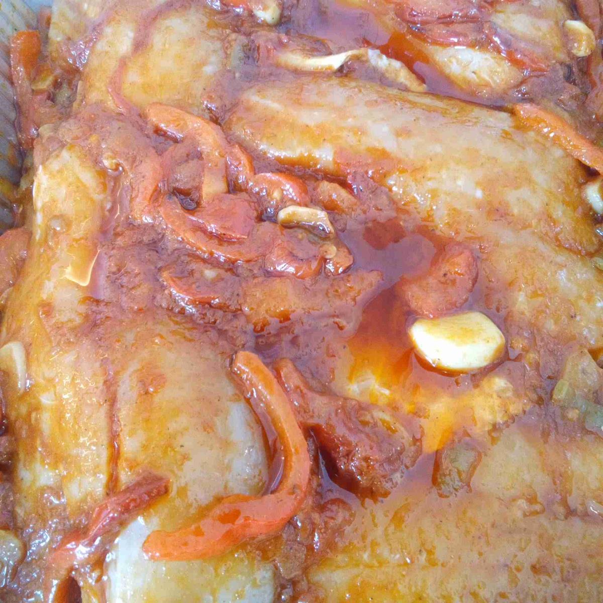לדגים-6/8  דגי מושט או סולומון ללא עור להשרות במיץ לימון חצי שעה ואחכ לשטוף.בקערה לשפוך כוס שמן,כף פפריקה מרוקאית.כף שטוחה מלח,קצת תיבול לדג,כורכום,כמון,כף וחצי רסק עגבניות כוסברה קצוצה לערבב את כל הרוטב ולהוסיף את הירקות ששמנו בצד לערבב טוב את הרוטב עם הדגים והירקות ולפרוס מעל התפוחי אדמה האפויים לפזר מעל כוסברה ולאפות על 180 עד שמוכן בערך 25 דקות.