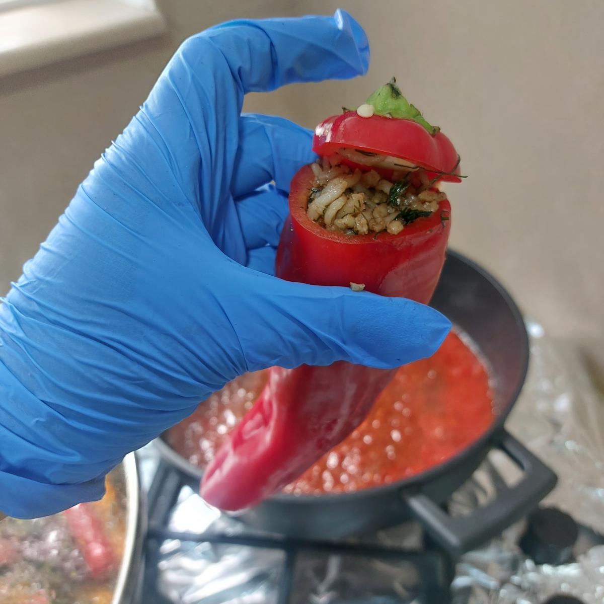 ממלאים את הפלפלים ומניחים בסיר. ממלאים מים עד לגובה הפלפלים. .