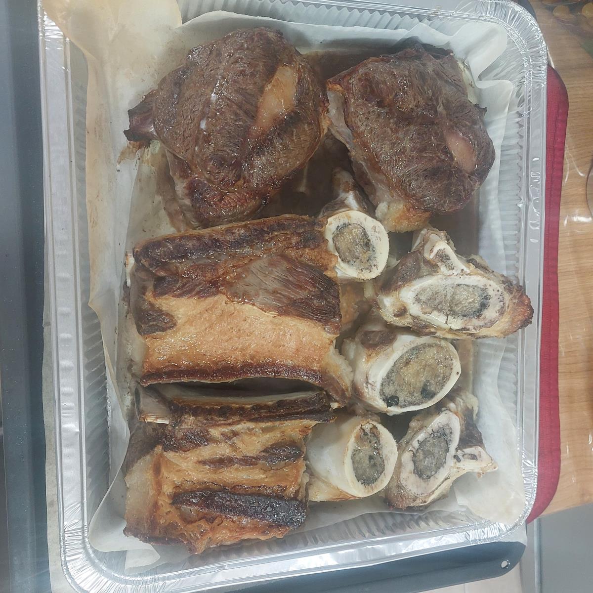 צורבים את הבשר ועצמות המח כ20 דקות בתנור על תוכנית גריל עד להשחמה. .
