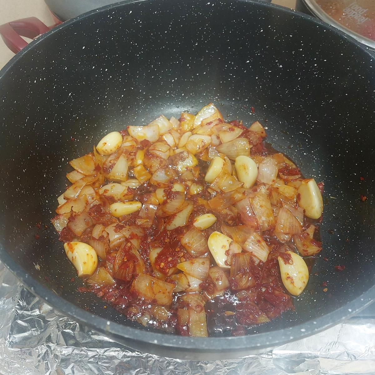 מרכיבים את החמין: מטגנים קלות את השום והבצל. מתבלים בכל התבלינים ומוסיפים פנימה את החומוס והשעועית. מוסיפים כוס מים רותחים ומביאים לרתיחה. .