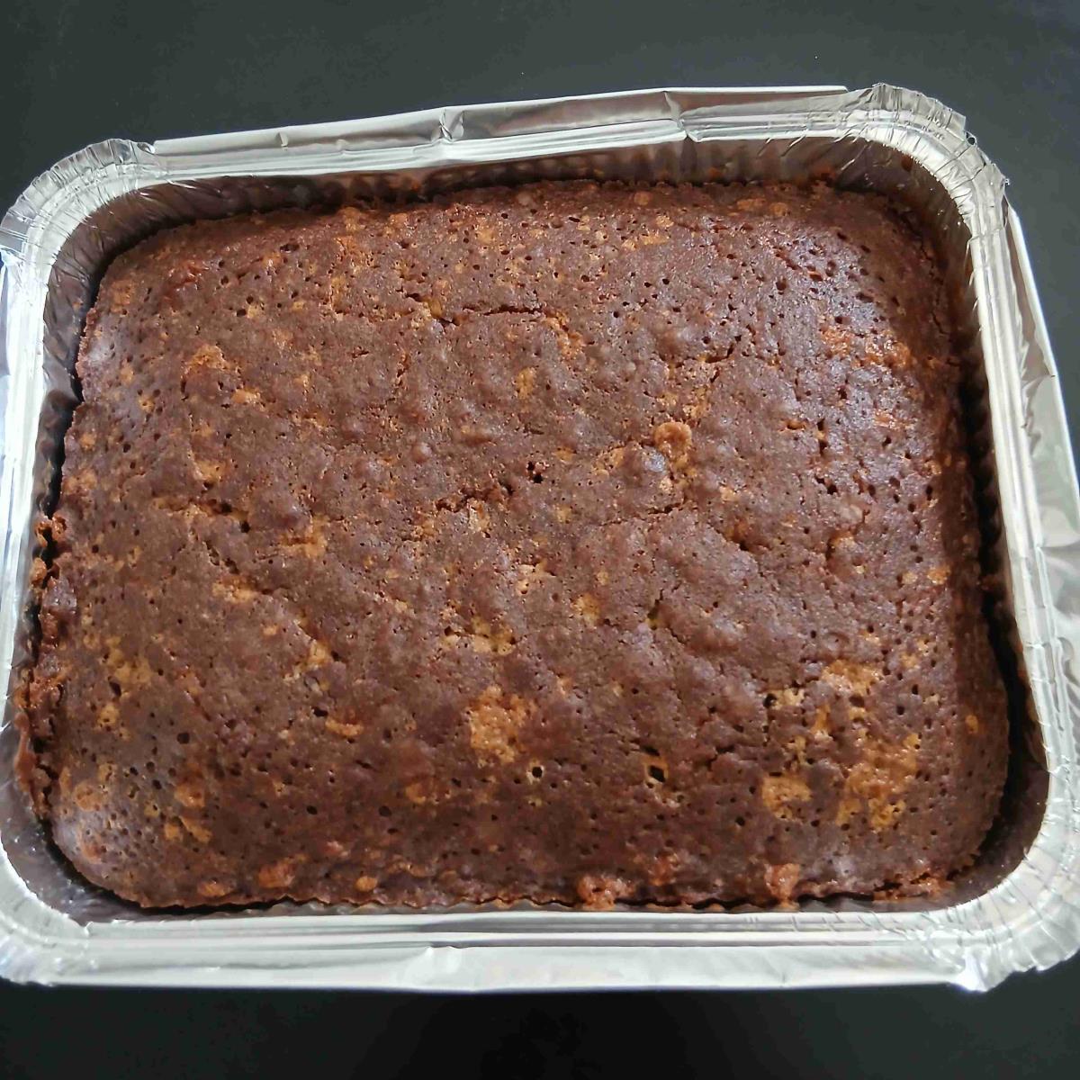 להוסיף אבקת אפיה ומלח ולערבב. להוסיף קקאו ולערבב. להוסיף קמח ולערבב עד לקבלת בלילה אחידה. להעביר לתבנית..