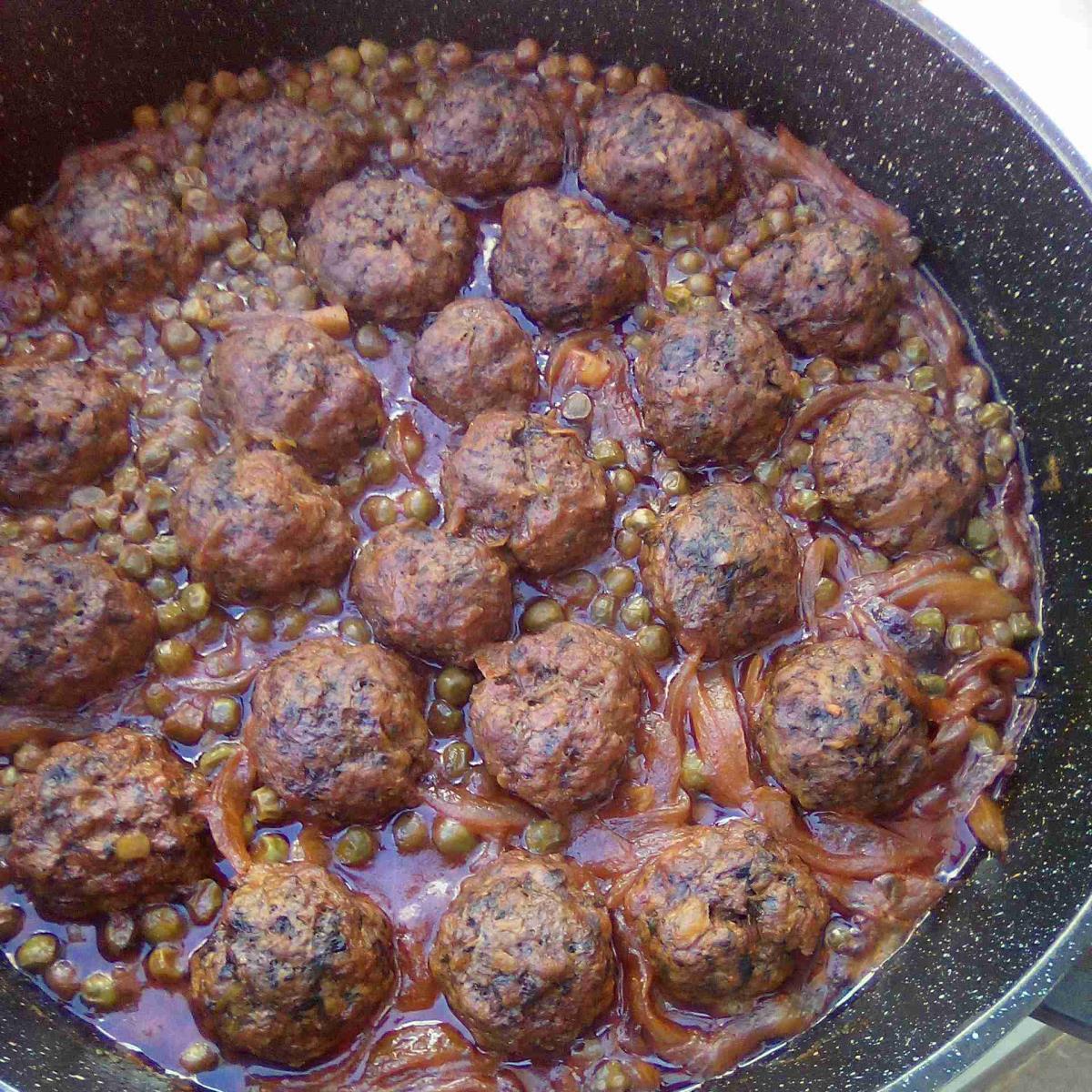 קציצות עם אפונה ובצל מקורמל סגול