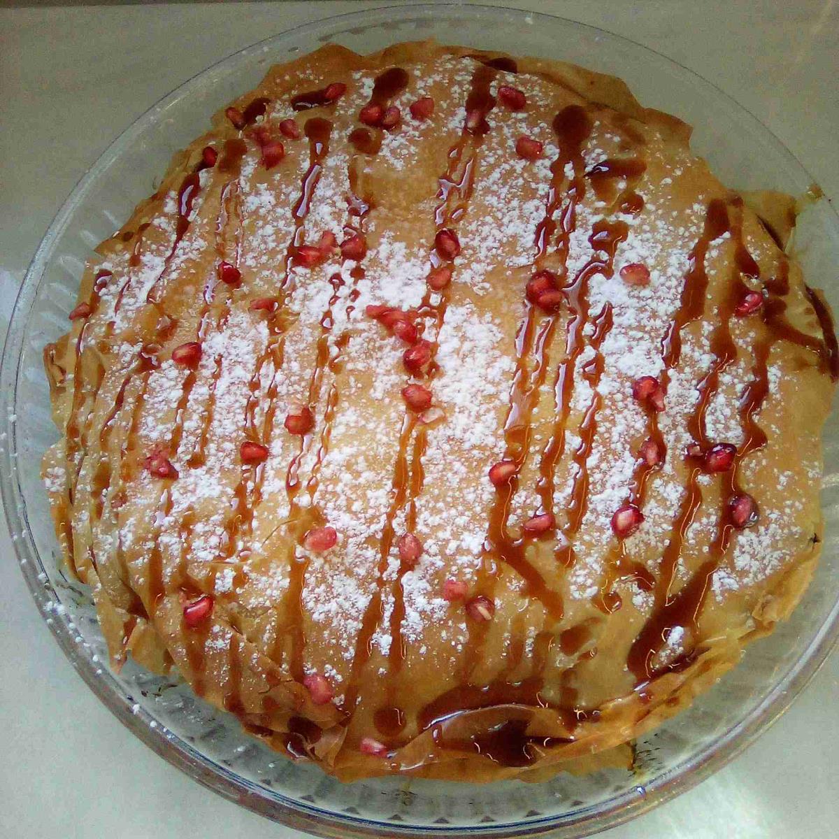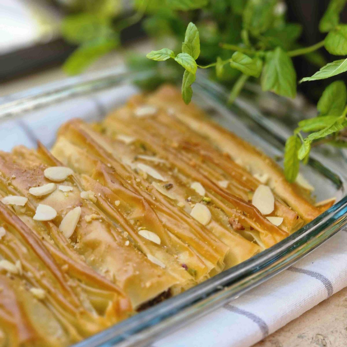 מאפה פילו קריספי ביותר במילוי קוביות חזה עוף ופירות יבשים