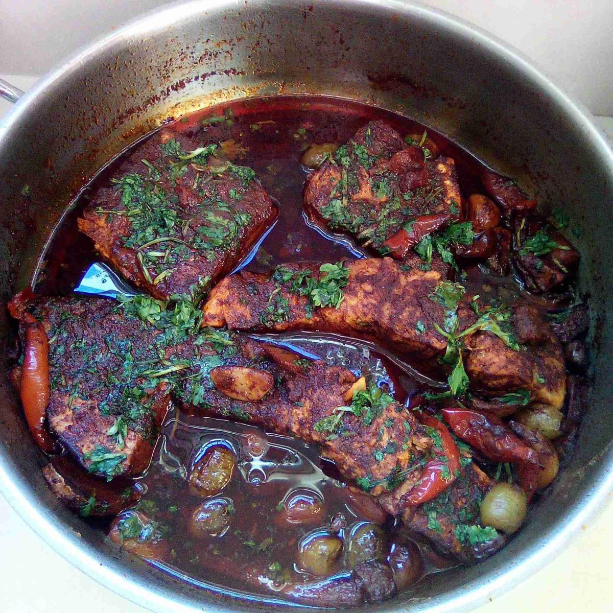 מתבשל לו בנחת עוף לסעודה מפסקת. מתכון שמיחדים אותו לסעודה מפסקת.של יום הכיפורים, שעובר אצלנו מהסבתא לבן ו.. לנכדה☺ עוף עם פלפל אדום, מלא שום וכוסברה, בתיבול מלח ,פלפל, וקינמון.